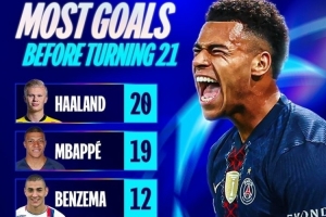 U21欧冠历史进球榜:哈兰德20球、姆巴佩19球,杜埃、亚马尔10球