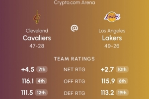 湖人净效率+2.7联盟第十,进攻效率115.9联盟第六,防守效率113.2联盟第19,战绩49胜26负。