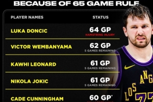 东契奇64场腿筋受伤;坎宁安、布克、华子、詹姆斯已失去评奖资格;文班亚马、小卡、约基奇皆剩5场比赛悬而未决;