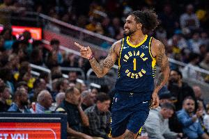 本场比赛,步行者全员外线手感不错,各种三分多点开花一度追上比分,虽然最终未能逆转成功,但命中率还是在线,全队三分54投23中,命中率达到42.6%。