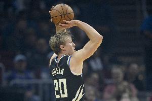 火热双枪!AJ·格林半场5记三分砍19分 瑞安半场9中5得15分