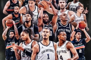 马刺官方晒2026西南赛区冠军海报:文班C位 福克斯瓦塞尔左膀右臂