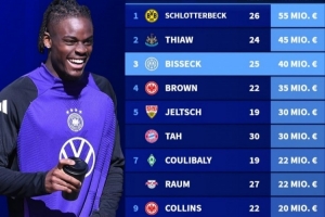 体育资讯3月25日讯 德国转会市场盘点了德国后卫身价,施洛特贝克排名第一,而没有入选德国本期名单的比塞克排在第三。
